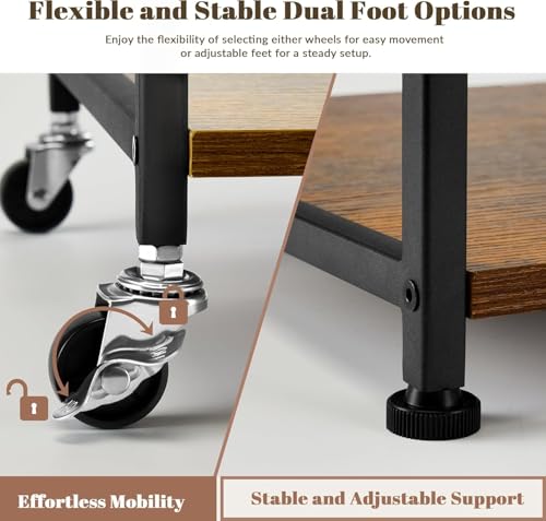 - Fixed or Mobile Option: This printer cart can be set up with either four castors for easy mobility or adjustable feet for a stable. Two of the castors are equipped with brakes, providing the option to lock the cart in place as needed