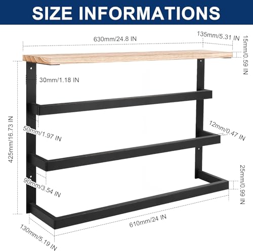 - 【رف فوط متعدد الوظائف】ستحصل على رف علوي خشبي و3 شماعات لتعليق الفوط، مما يوفر لك مساحة تخزين عملية وأنيقة في آنٍ واحد. يوفر لك سهولة الاستخدام – يمكنك تعليق الفوط أو فوط الوجه بكل سهولة، مع إمكانية تخزين فوطة الحمام والملابس وفوط اليد، وحتى الموبايل في نفس الوقت. يساعد في الحفاظ على منزلك مرتبًا ونظيفًا للغاية.