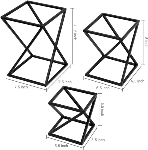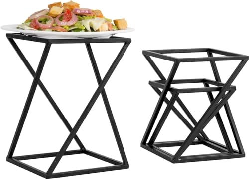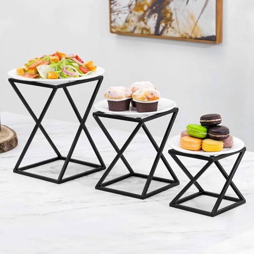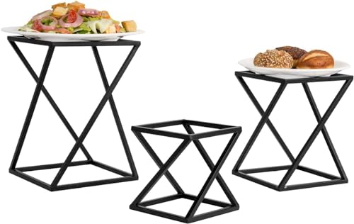 - يمكنك رفع أي صينية أو طبق بسهولة مع 3 رفوف عرض الطعام المعدنية ذات اللون الأسود المطفي بأشكال هندسية مختلفة الحجم.