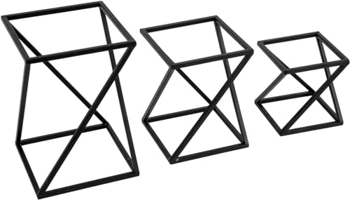 INDIDECOR - حامل رفع بيتزا معدني بلون أسود مطفي بتصميم هندسي ملتوي/ حوامل عرض طعام من انديكور، طقم من 3 قطع - 61882