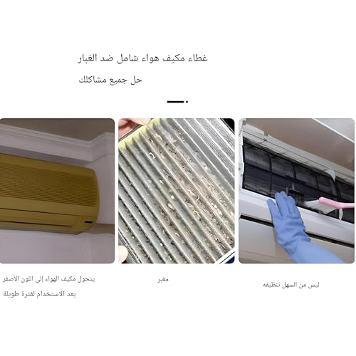 - ◀غطاء تكييف هواء مرن مناسب لتكييفات الهواء المثبتة على الحائط، وقابل للتنظيف في الغسالة ومناسب الغسيل اليدوي، وهو قابل لإعادة الاستخدام ومتين.