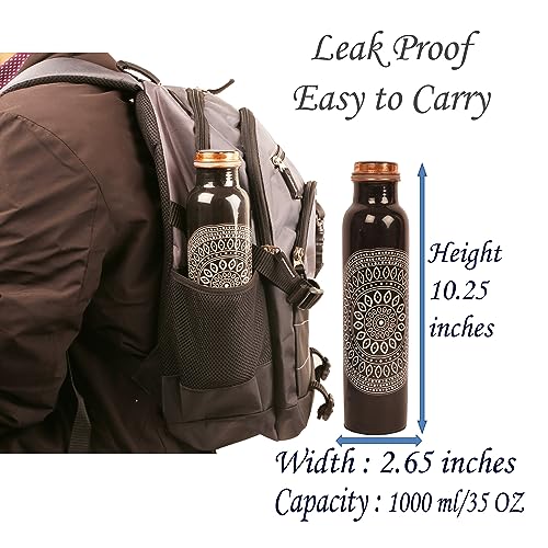- PERFECT STYLE AND QUALITY : An Easy to use leak proof bottle. Carry confidently to the Gym, Yoga Class, Work and School, even upside down! For that extra style statement, chose a gorgeously enamelled or etched pattern. The inside of the patterned styles are also pure copper - we care about your health. Easy to clean.