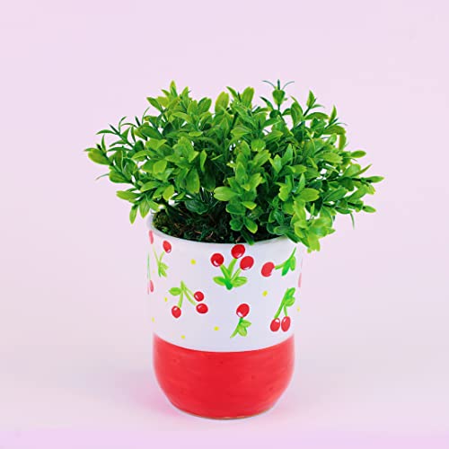 Generic - اصيص فخار هاند ميد بالنبات الصناعي، أبيض وأحمر