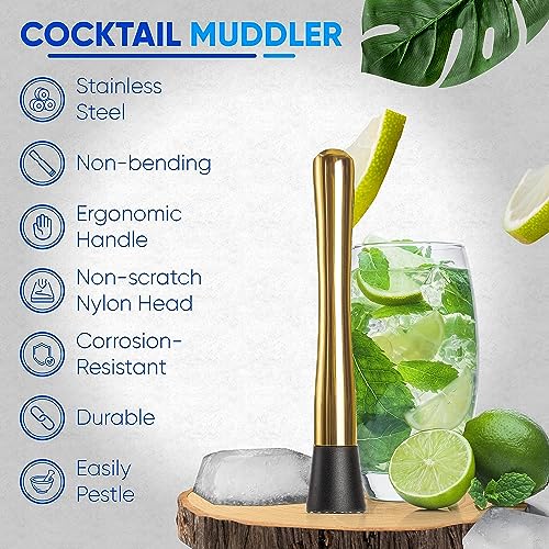 - ERGONOMIC HANDLE SHAPE: With a specially made handle, so you can hold easier and tighter grip. Crush the cocktails to help release flavors in your mixture. Better metal mixer allows you to mash with less power.