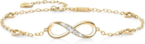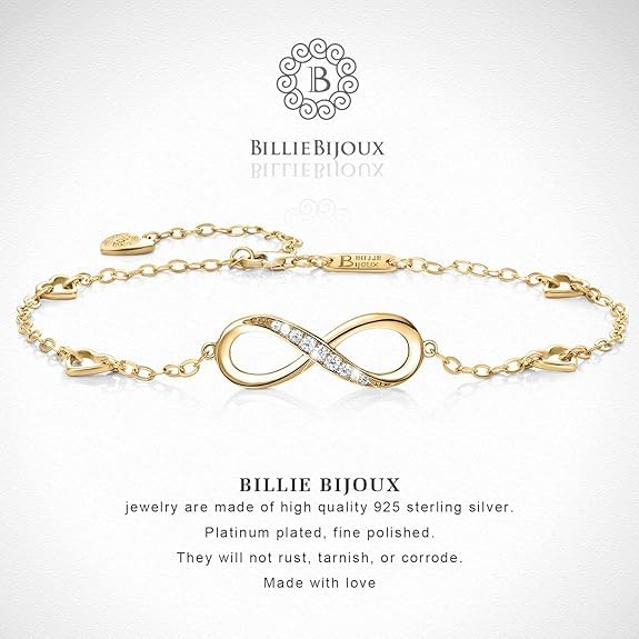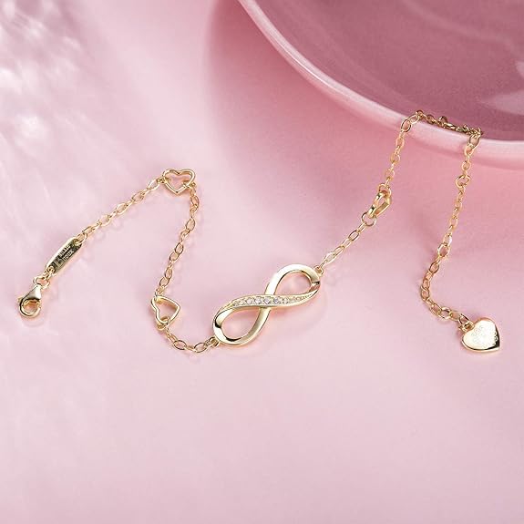fashion mania - Infinity Symbol Women'S Anklet 925 Sterling Silver Cubic Zirconia Bracelet Adjustable Charm Ankle Bracelet The Perfect Gift for a Girl-Gold