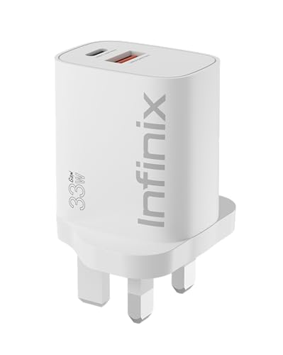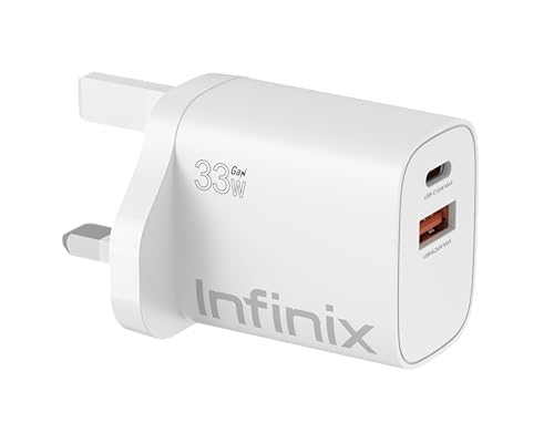 - انفنيكس طقم شاحن XC33EU+XDC53 ابيض، شحن سريع 33 واط، مطاط حراري مرن، 3 امبير كحد أقصى، واجهة، سرعة نقل البيانات، حتى 480 ميجابايت، 100-240 فولت 50/60 هرتز، طول C إلى C 1000 ملم.