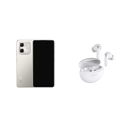 Infinix - موبايل هوت 50i شبكة الجيل الخامس 5G الذكي سعة تخزين 256 جيجابايت ذاكرة رام 8+8 جيجابايت بلون رمادي تيتانيوم + سماعات انفينيكس XE26 اللاسلكية الحقيقية بلون أبيض من انفينيكس