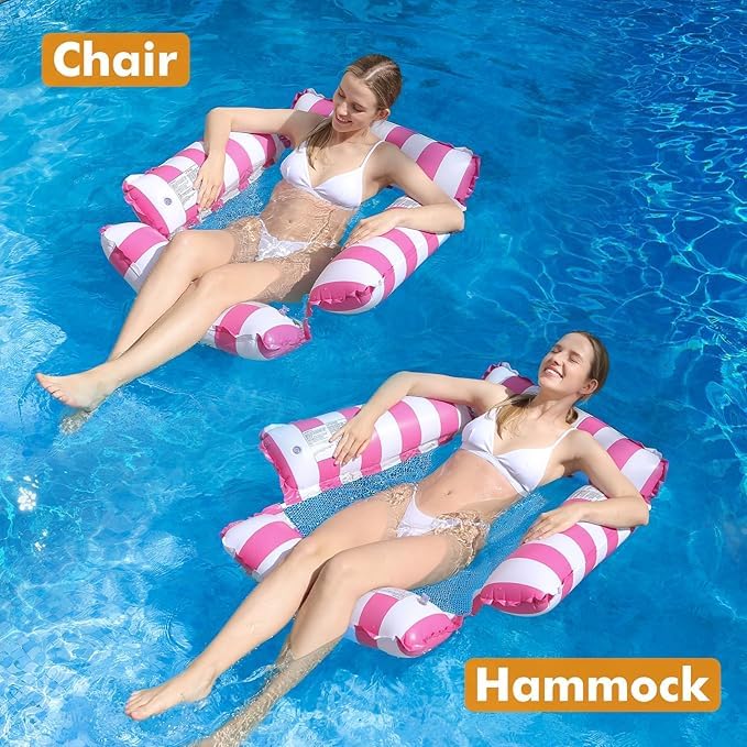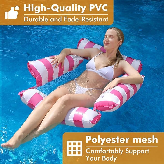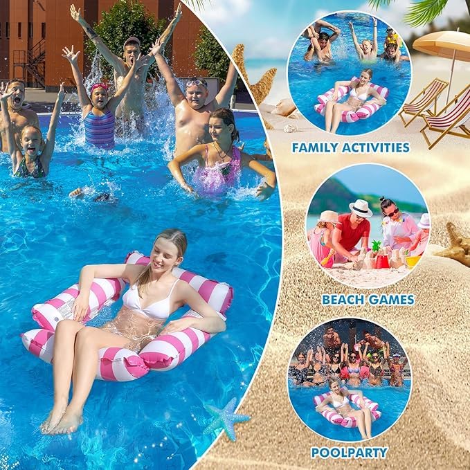 Generic - كرسي عائم قابل للنفخ للبالغين والاطفال، ارجوحة عائمة بنمط مخطط لحفلات حمام السباحة والمرح المائي في الصيف (متعدد الالوان)