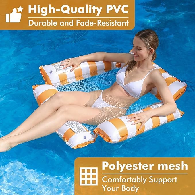 Generic - Inflatable Pool Float Chair Lounge for Adults and Kids Floating,Stripe Pattern Float Hammock for Pool Party Summer Water Fun (Orange+Dark Blue)