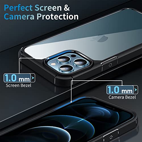 INFOSUN - INFOSUN iPhone 12 Pro Max Case Clear Cover Ultra Thin Silicone Shockproof Hard Back Cases Transparent Protective Slim Phone Case for Apple iPhone 12 Pro Max 6.7 inch - Black