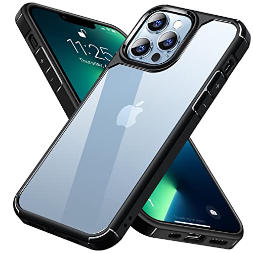 INFOSUN - انفوسن جراب شفاف لموبايل ايفون 13 برو، خلفي صلب رفيع للغاية من السيليكون مضاد للصدمات ابل 6.1 بوصة - اسود