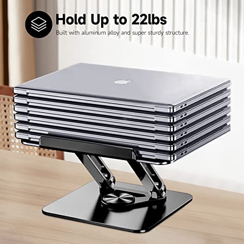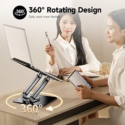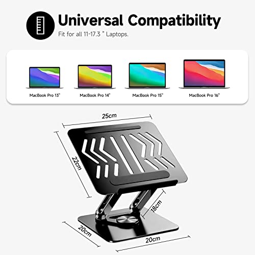 INFOSUN - INFOSUN Laptop Stand, Notebook Holder with 360 Rotating Base, Adjustable Ventilated Aluminium Laptop Stand for Desk, Foldable Portable Riser Laptop Stand, Compatible with Laptop (11-17.3 inch) Black