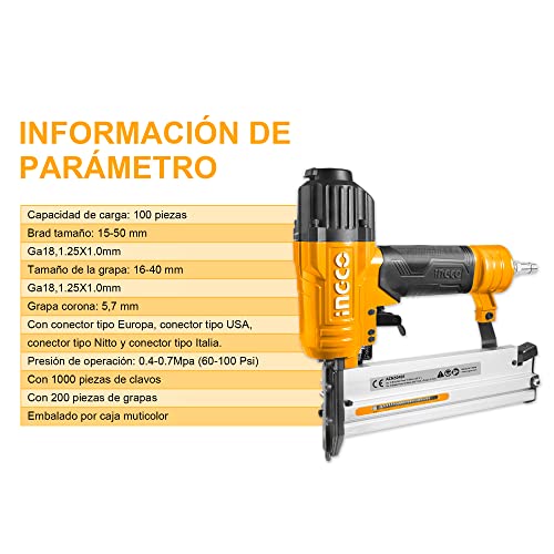 Ingco - INGCO 18 Gauge Pneumatic Nailer With Nails And Staples ACN50401