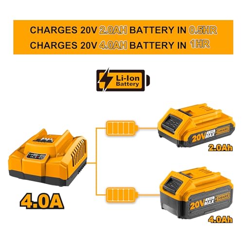 - 【Charging Efficiency】You can expect a 2.0Ah battery to charge in 0.5Hr, a 4.0Ah battery to charge in 1Hr; a LED indicator helps you know the battery status conveniently.