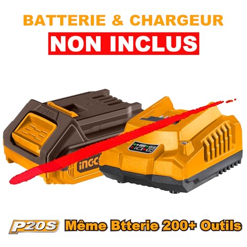 Ingco - ماكينة باور شير لاسلكية CGTLI20018 ببطارية ليثيوم ايون 20 فولت لتشذيب العشب مع البطارية من انجكو، عبوة من قطعة واحدة، الشاحن غير متضمن، موديل CGTLI20018