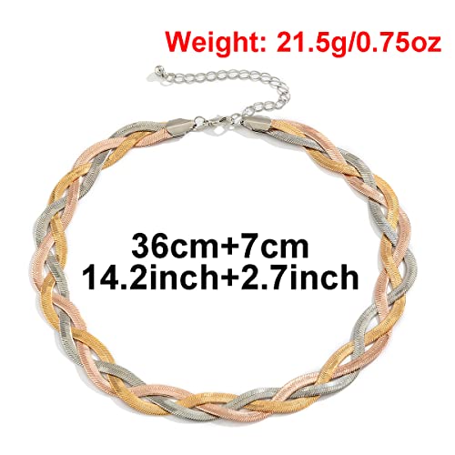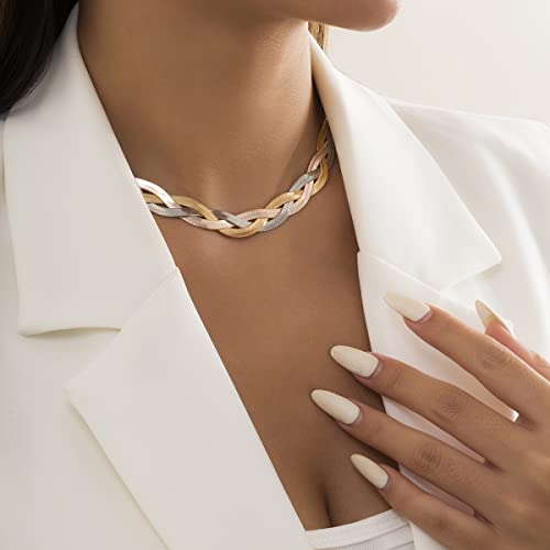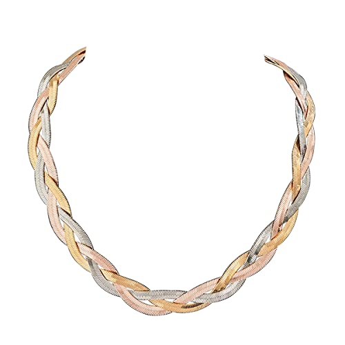 Ingemark - انجيمارك قلادة سلسلة ثعبان نحاسية مطلية بالذهب والفضة للنساء والفتيات المراهقات شوكر مسطحة بطبقات على شكل متعرجة مجوهرات عصرية نحاسي نوب