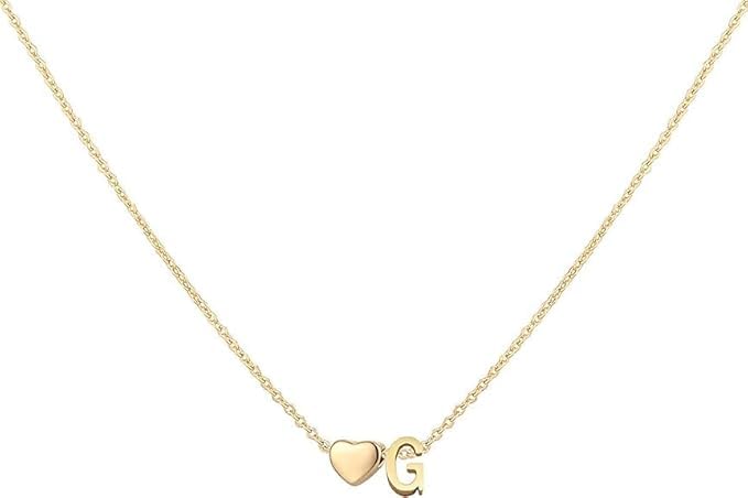 Generic - Initial Letter With Heart Pendant Necklace, Gold Plated Chain, Dainty Jewelry (G)
