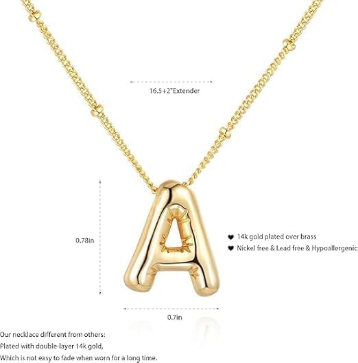 Generic - Initial Letters Ballon Pendant Necklace, Gold-Plated Chain, Fashion Jewelry