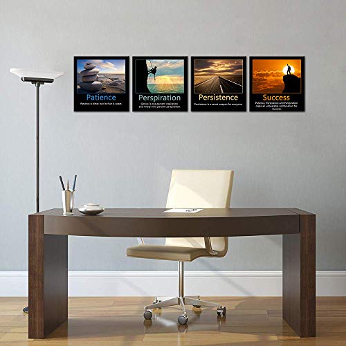 Artsbay - 4 قطع ديكور مكتب اقتباسات تحفيزية شعار النجاح الملهم جيكلي طباعة الفن الصبر التعرق ملصق لوحة مطبوعة 12 انش عرض × ارتفاع اسود INP190125-5