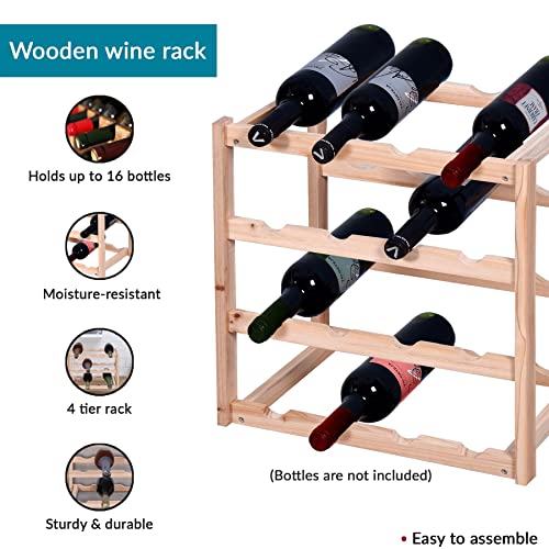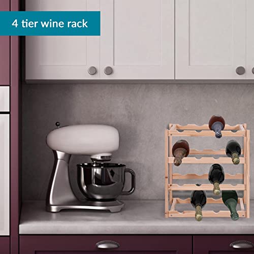 Innoteck - Innoteck Essentials 4 Tier Wooden Wine Rack - Free Standing Wine Storage Holder with Screws - Strong Wood - Wine Rack Cabinet for Home Living Room, Pantry, Kitchen, Cabinet, Cellar, Bar - Natural