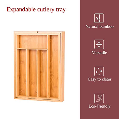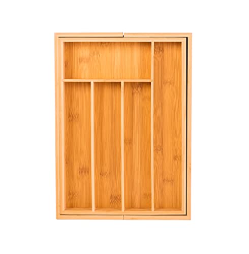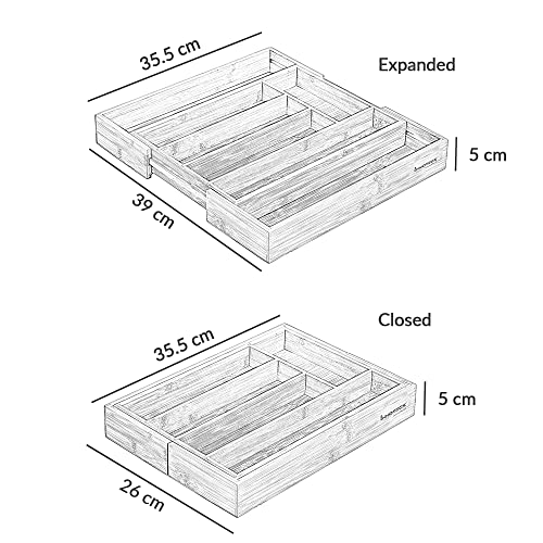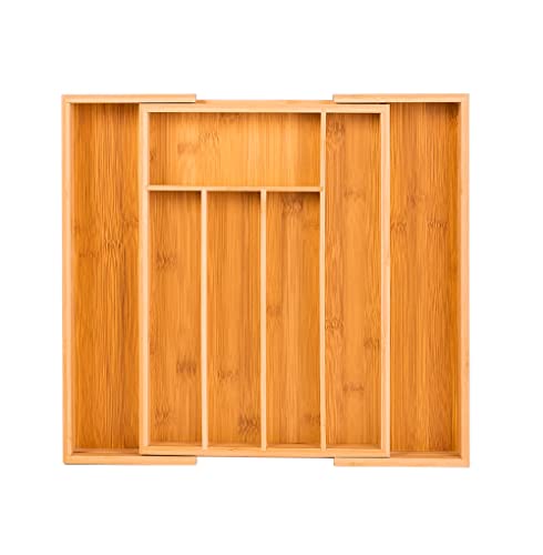 Innoteck - صينية أدوات مائدة من الخيزران الطبيعي قابلة للتوسيع انوتيك اسينشالز - منظم درج تخزين للمطبخ - 5 إلى 7 مساحات للتعديل