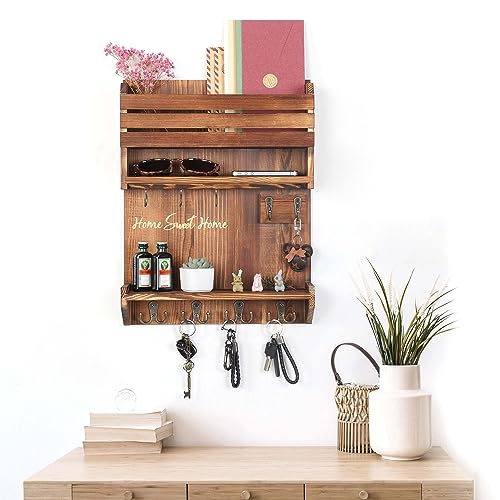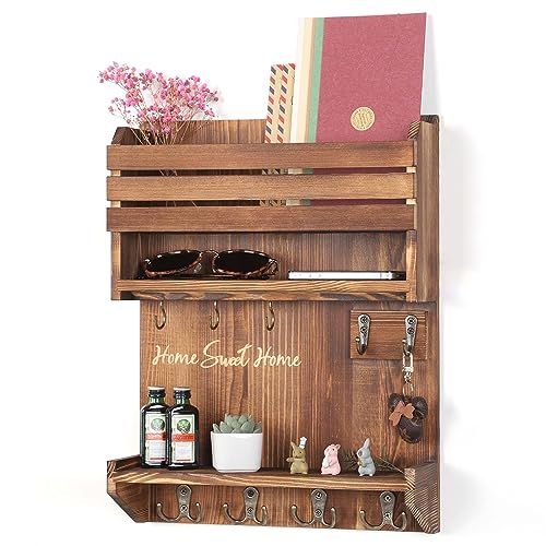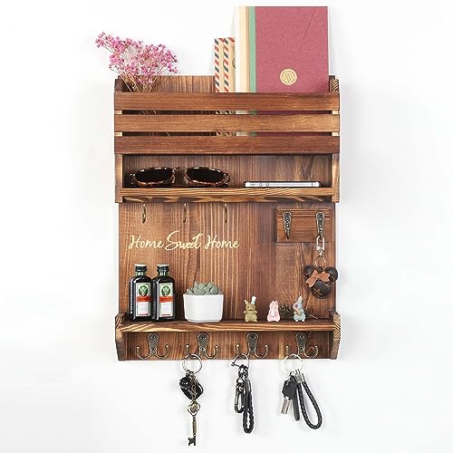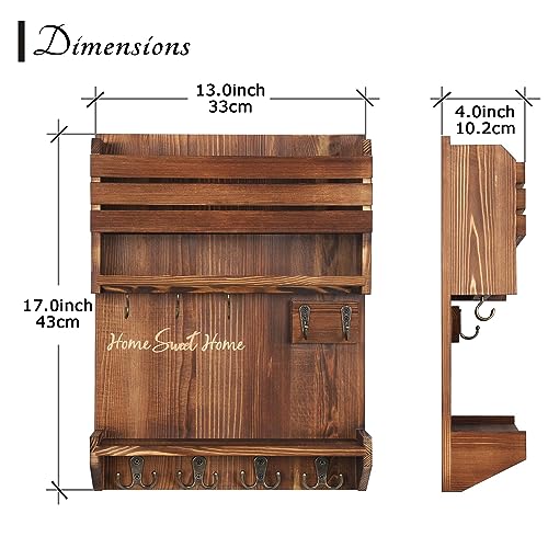 - 【PREMIUM SOLID WOOD MATERIAL】: Key and mail holder for wall made of high-quality natural solid pine wood. It is healthy, sturdy and durable. Suitable for fashionable atmosphere, simple and rustic, retro chic any style of home decoration.