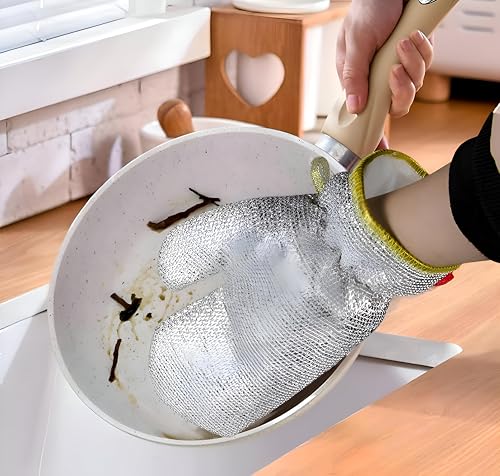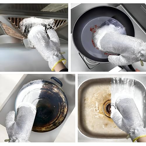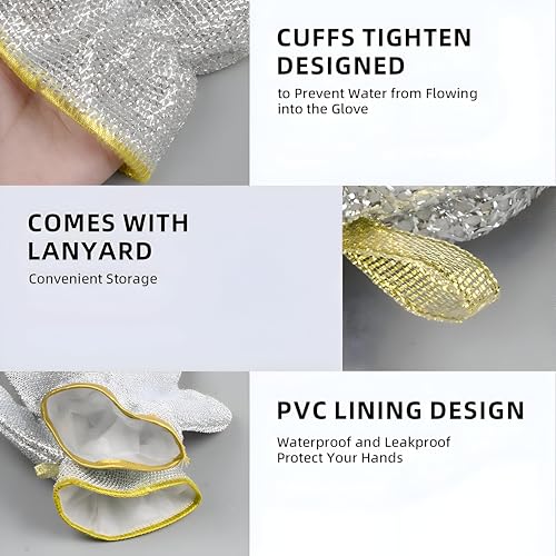 Generic - Innovative Multi-Purpose Wire Dishwashing Gloves, Steel Wire Insulation for Water Protection, Perfect for Kitchen Cleaning Tasks, Dishwashing, Tables, Stovetops, Easy Rinsing (2 Pairs)