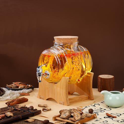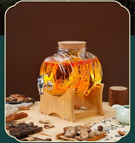 Inscrip - Glass Drinks Dispenser, Glass Drinks Dispenser with Leak-proof Tap, Drinks Dispenser Barrel with Wooden Stand, Cold Drink Kettle Container for Fridge, Iced Tea, Lemonade, Bar, Party (5L)