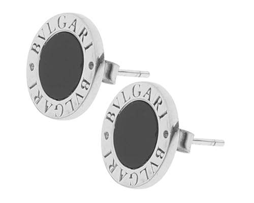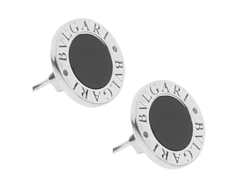 Generic - Insider 925 Silver Black Circle Shaped Inside Engraved Bezel Earrings for Women - Platinum Plated Silver - SWERC2645