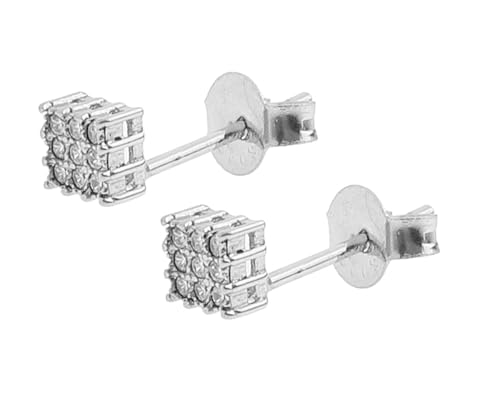 Generic - Insider اقراط اذن من الفضة عيار 925 على شكل مربع صغير مرصع باحجار الزيركون الابيض بتصميم انسيابي نسائي - فضي مطلي بلاتين - SWERA3933