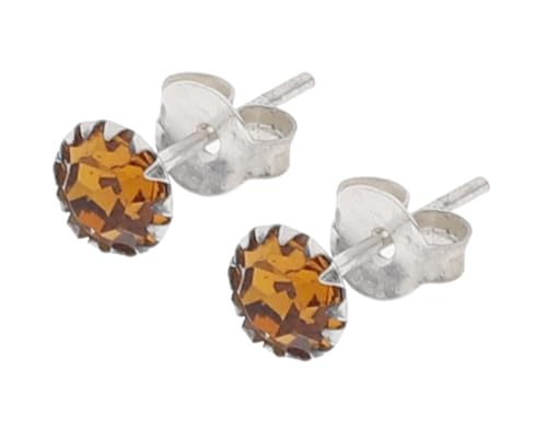 Generic - Insider Women's 925 Silver Solitaire Single Stone Light Brown Zircon Inside Micro Engraving Bezel Earrings - Silver - SWER0491
