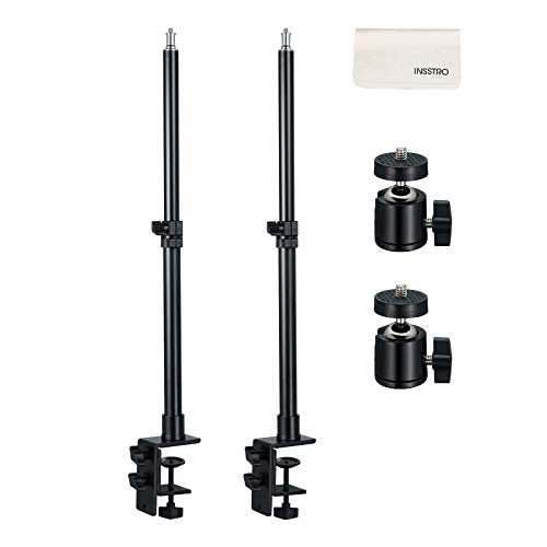 INSSTRO - 2PCS Tabletop Light Stand with 360° Mini Ball Head for LED Panel, Adjustable 12.5-20.6 inches Table Mount Clip Stand Set with 1/4 inch Screw for Live Streaming Youtube Video Photography
