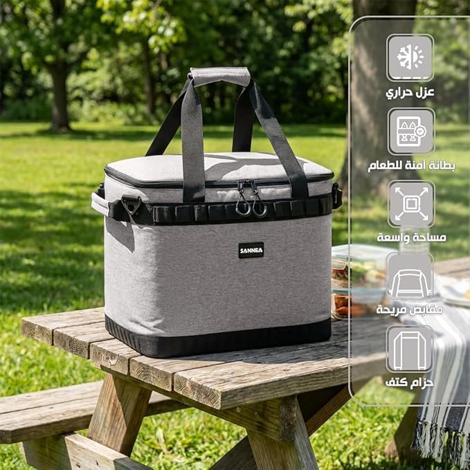 Generic - Insulated Cooler Bag 25L Large Thermal Tote, Waterproof Leakproof Lining, Reusable Lunch Food Bag with Adjustable Shoulder Strap for Work, Office, School, Travel, Picnic, (grey) BB-17