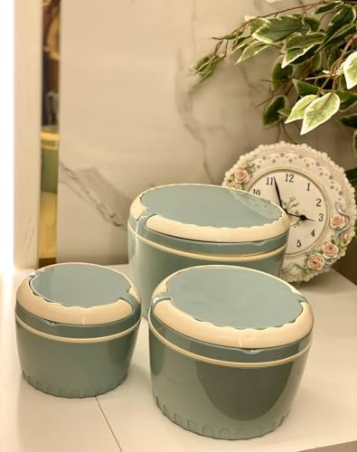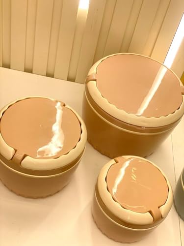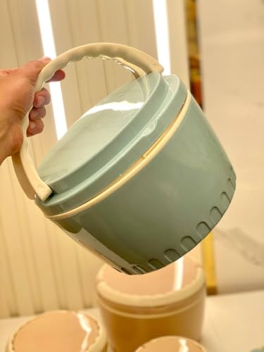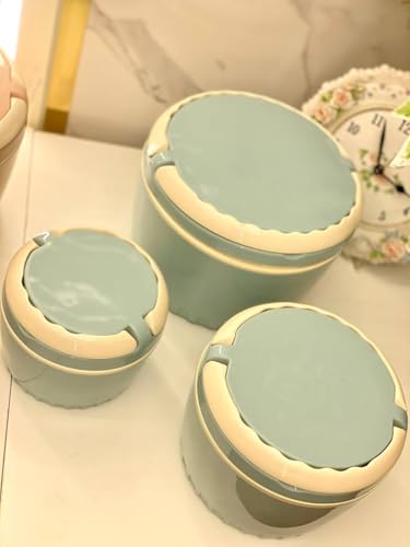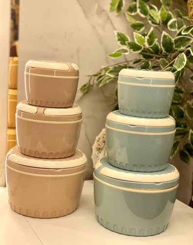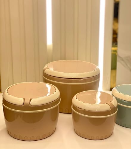 Generic - حافظات طعام عازلة للحرارة، طقم 3 قطع، ستانلس ستيل داخلي، أحجام كبيرة 3500/2500/1500 مل، محكمة الغلق، لون بيج وأزرق