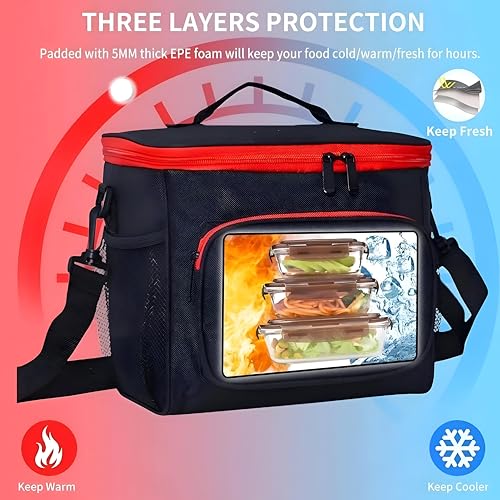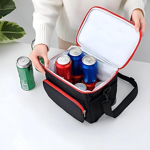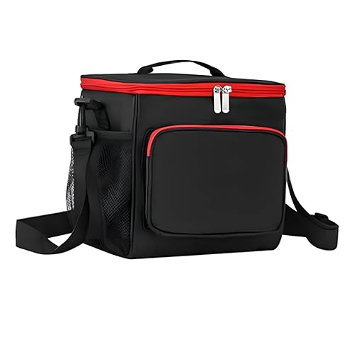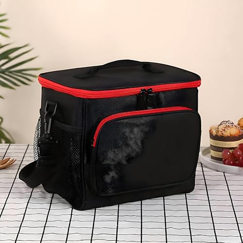 Generic - Insulated Lunch Bag - Thermal tote with adjustable shoulder strap, black‑red finish, 10 L capacity, 5 mm EPE foam padding, size 10.2×7.1×9.1 in, multiple pockets for organized meals.