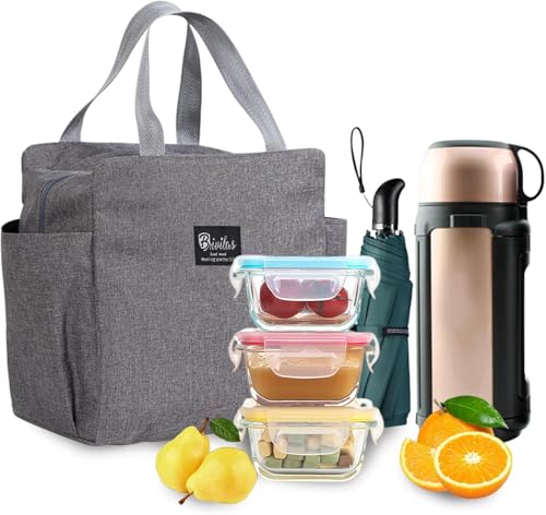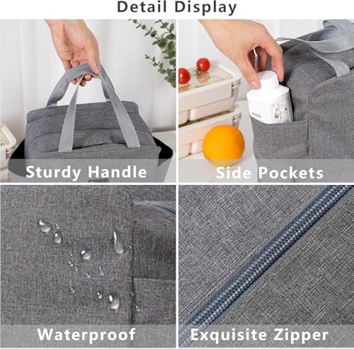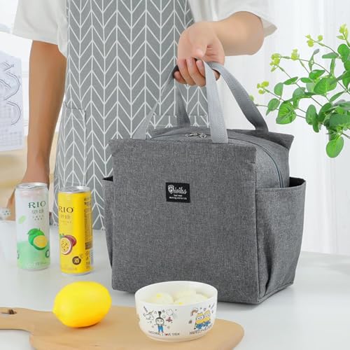 Generic - Insulated Lunch Tote Bag for Women Men, Large Capacity Reusable Lunch Bag, Waterproof Bento Bag for Work Picnic (Grey)