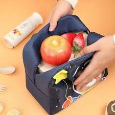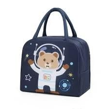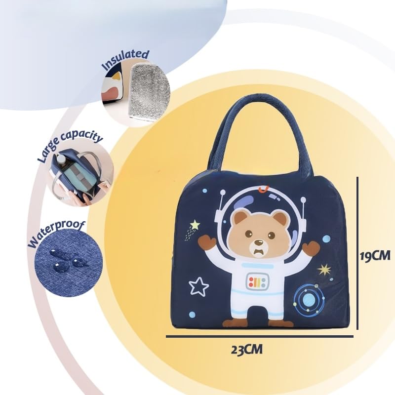 Generic - Insulated Thermal Lunch Bag, Navy Blue Striped with astronaut Bear Design, for School and Travel حقيبة غداء حرارية معزولة، مخططة باللون الأزرق الداكن مع تصميم دب فضاء ، للمدرسة والسفر