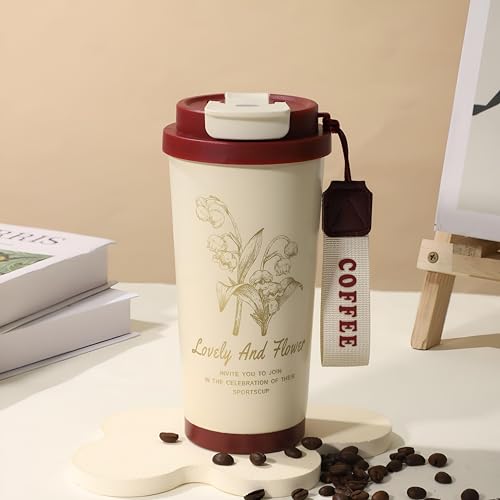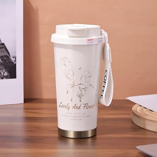 - This elegant ceramic travel mug features a delicate 'Lovely And Flower' floral design in white, offering a refined aesthetic that enhances any beverage moment, whether at home, in the office, or during travel, setting it apart from ordinary tumblers with its artistic charm.