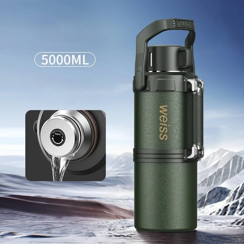 Generic - Insulated Vacuum Flask Stainless Steel Water Bottle Large Capacity 316 Steel Travel Tumbler for Hot and Cold Drinks Home Office Outdoor, 5 L Capacity, F-1525 (Army Green)