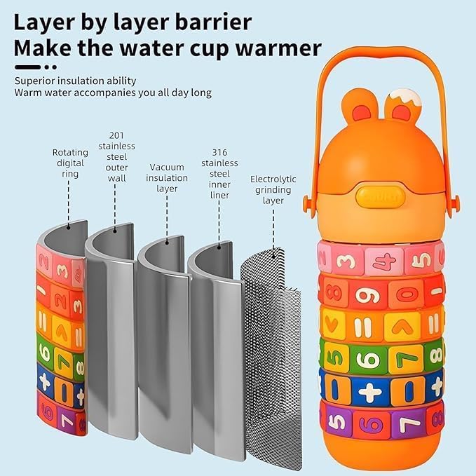 Generic - Insulated Water Bottle 500 ml Stainless Steel Vacuum Flask With Straw Handle Strap Leak Proof Design(F-1023) (orange)