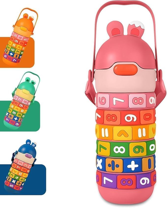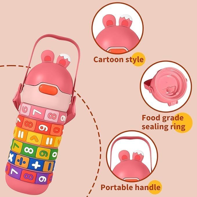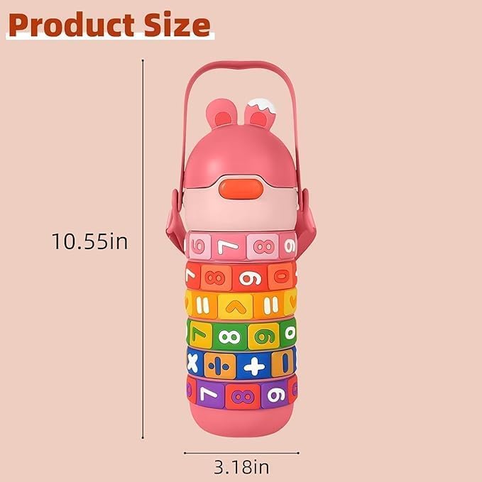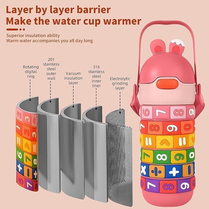 Generic - Insulated Water Bottle 500ml water bottel Thermos With Straw Handle Strap Leakproof Math Numbers Print F-1023 (pink)