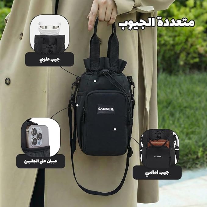 Generic - Insulated Water Bottle Bag 1.5 L Thermal Carrier with Waterproof Leakproof Lining, Reusable Drink Tote for Office, Gym, School, Outdoor Trips(bb-532) (black)