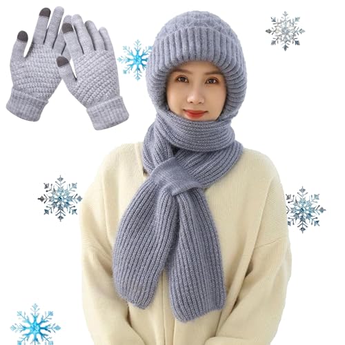 tarcegta - Integrated Ear Protection Windproof Cap Scarf, 2 in 1 Winter Warm Knitted Hat Scarf, Winter Hat and Scarf Set for Women