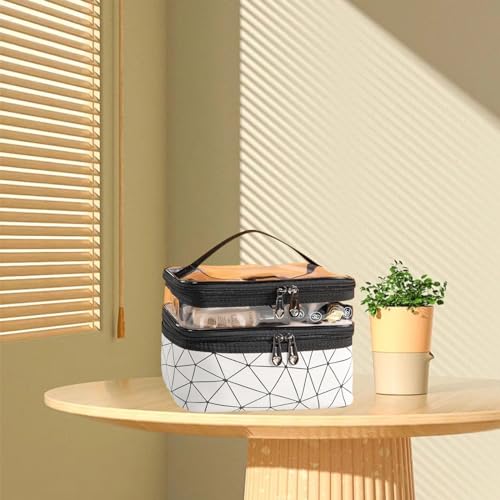 intellitoy - شنطة مستحضرات تجميل للسفر مزدوجة الطبقات مكياج بسعة كبيرة أدوات الزينة مقاومة للماء سفر محمولة منظم للنساء والبنات أبيض قماش