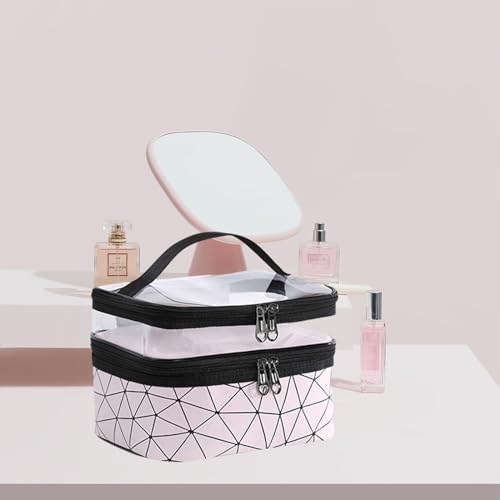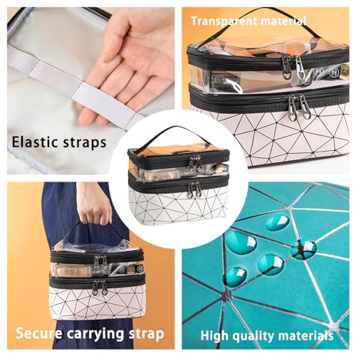 - 【واسعة ومنظمة】: تتميز شنطة مستحضرات التجميل الشفافة هذه بتصميم مزدوج الطبقات مع مساحة تخزين كافية. الطبقة العلوية عبارة عن مساحة تخزين شفافة من بلاستيك بي في سي، والتي يمكنها حمل أحمر الشفاه ومنظف الوجه وغيرها من الأغراض. الطبقة السفلية أكثر اتساعًا وتأتي مع 4 أحزمة أستك للحفاظ على أدوات المكياج الخاصة بكِ منظمة وسهل الوصول إليه. يسمح لكِ تصميم الفتحة الكبيرة باسترجاع أدوات المكياج الخاصة بكِ بسهولة.