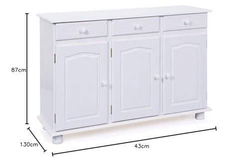 Inter Link - Inter Link Livio Sideboard 3-Doors Pine, White Finish, 130 x 43 x 87 cm