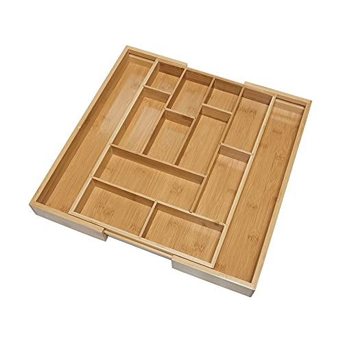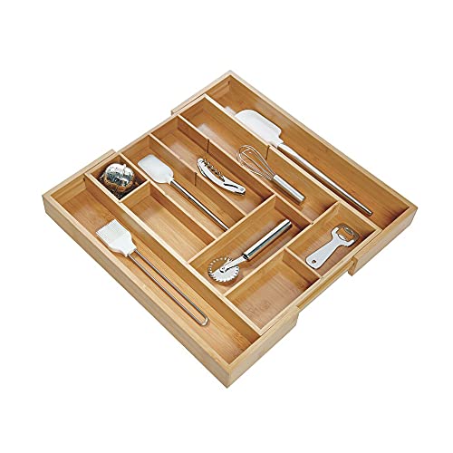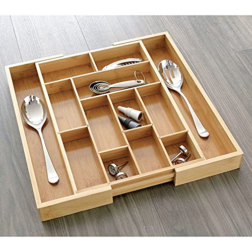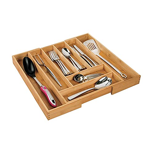 InterDesign - انترديزاين منظم ادراج ادوات تناول الطعام من الخيزران قابل للتوسيع مع مساحات تخزين مقسمة للمطبخ والخزانة والحمام والمكتب وغرفة النوم من فورمبو، طبيعي