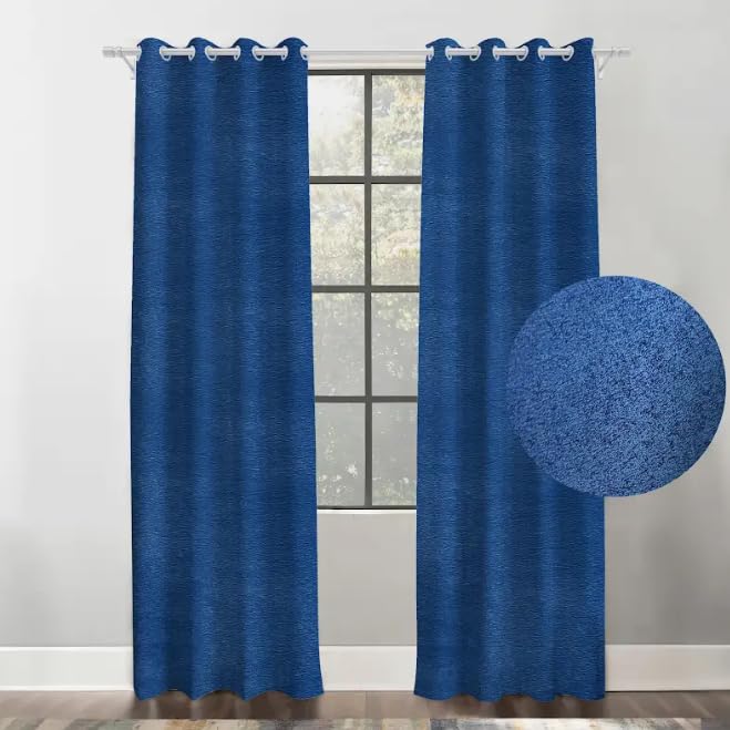 INtex CURTAINS HOUSE - بيت ستائر انتيكس منسوجة من الكتان الصناعي المتين - ترشيح الضوء لغرف المعيشة والاستقبال وغرفة النوم - حلقات تثبيت الستيل قطعتين ازرق كحلي 140 سم عرض × 230 طول انتكس الستائر كتان صناعي سادة