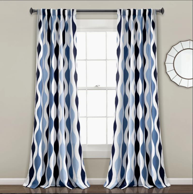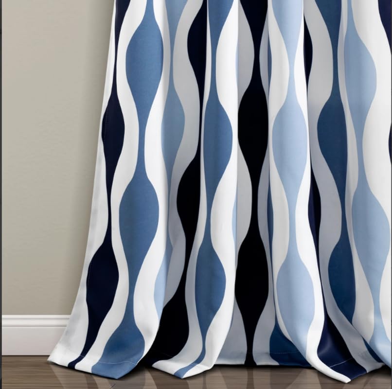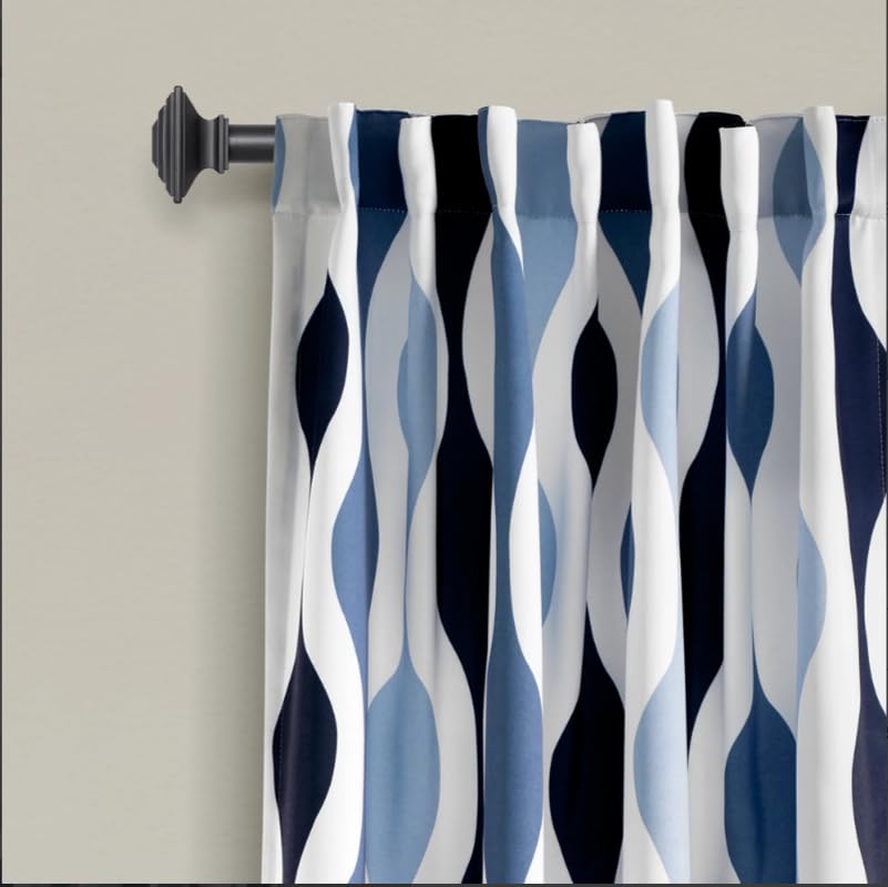 - Mid Century Geo Light Filtering Window Curtain Panel Set from INtex CURTAINS HOUSE, featuring a unique liquid paint drip design.