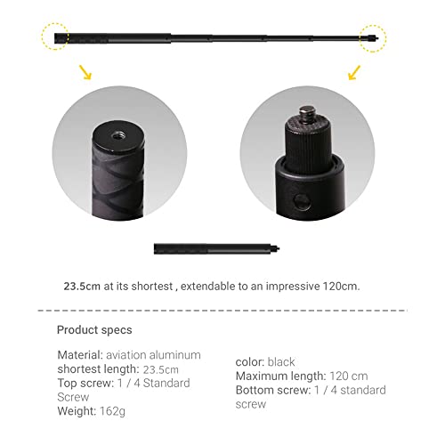 Mibee - Invisible Selfie Stick 1/4 Inch Screw 23.5cm-120cm Adjustable Length Compatible for Insta360 ONE X/ ONE/ EVO/ONE R/ ONE X2 Camera